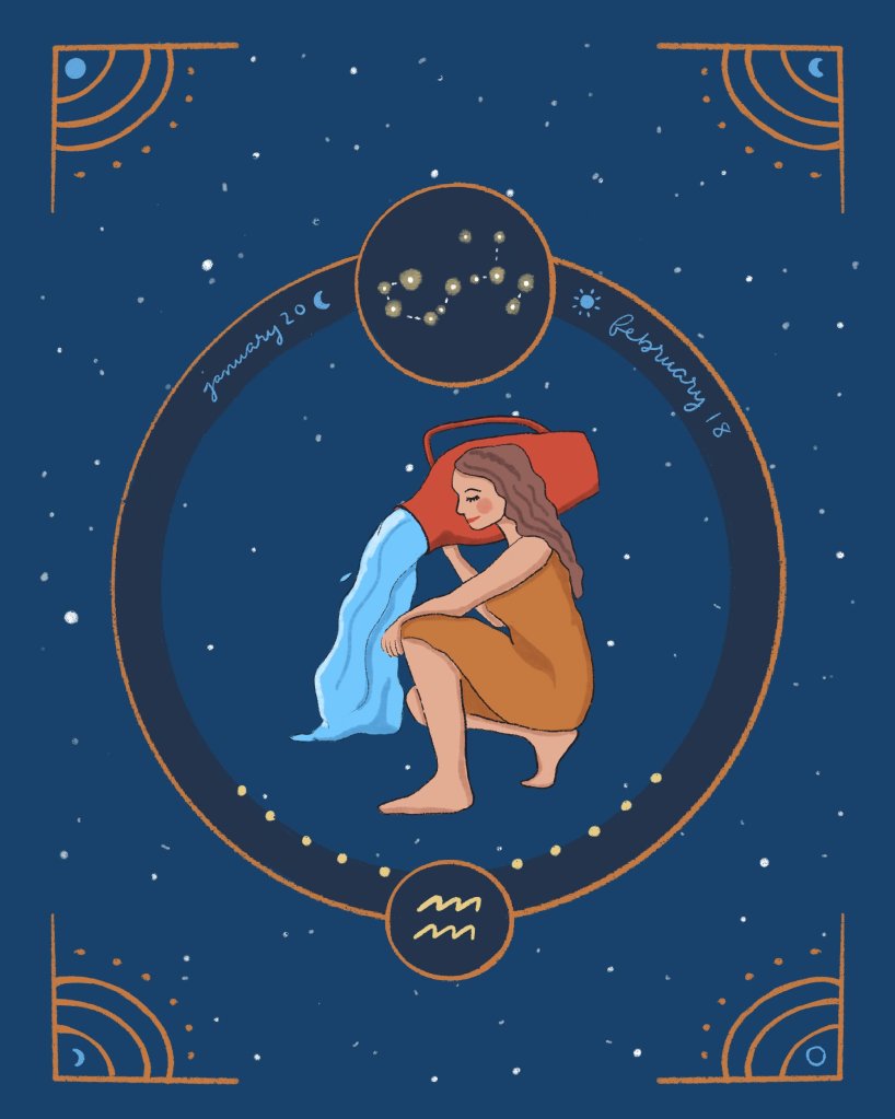 Aquarius is a fixed, masculine sign. As a fixed sign, Aquarius is righteously stubborn and loyal. These signs are true friends to those they care most about in this world. This also makes Aquarius the ride-or-die lover. However, this stubborn aspect of the fixed nature is accounted for in God/god-complex. Aquarius is always right – period. Don’t even try to argue. As a masculine sign, Aquarius will project their energy out into the world, typically through their ideas and innovations. Aquarius is primarily ruled by Uranus, secondarily by Saturn. This means that Aquarius is influenced by the rebellious, philosophical Uranus first, but there are Saturnian influences in the way Aquarius takes on responsibility, work, and commitments. Aquarius is also denoted as the Water-Bearer. The House associated with Aquarius is the 11th House of Success and Community. The lucky day for an Aquarius is Saturday.